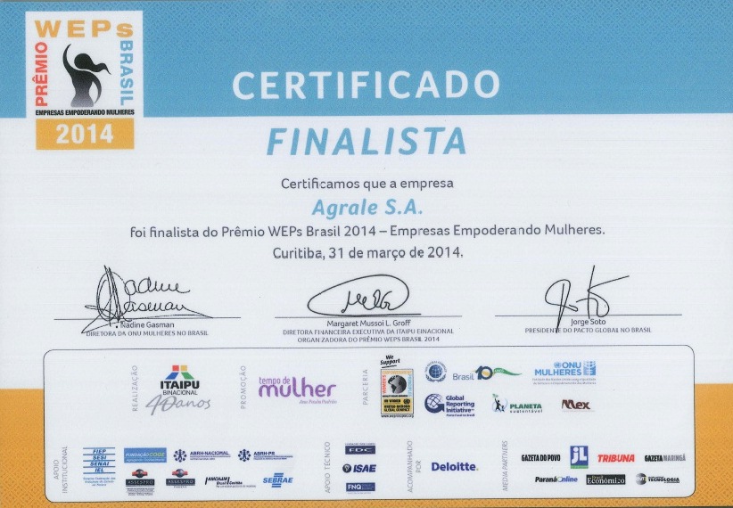 A Agrale recebeu o certificado de empresa finalista no Prêmio WEPs Brasil, que valoriza o empoderamento das mulheres no âmbito profissional.