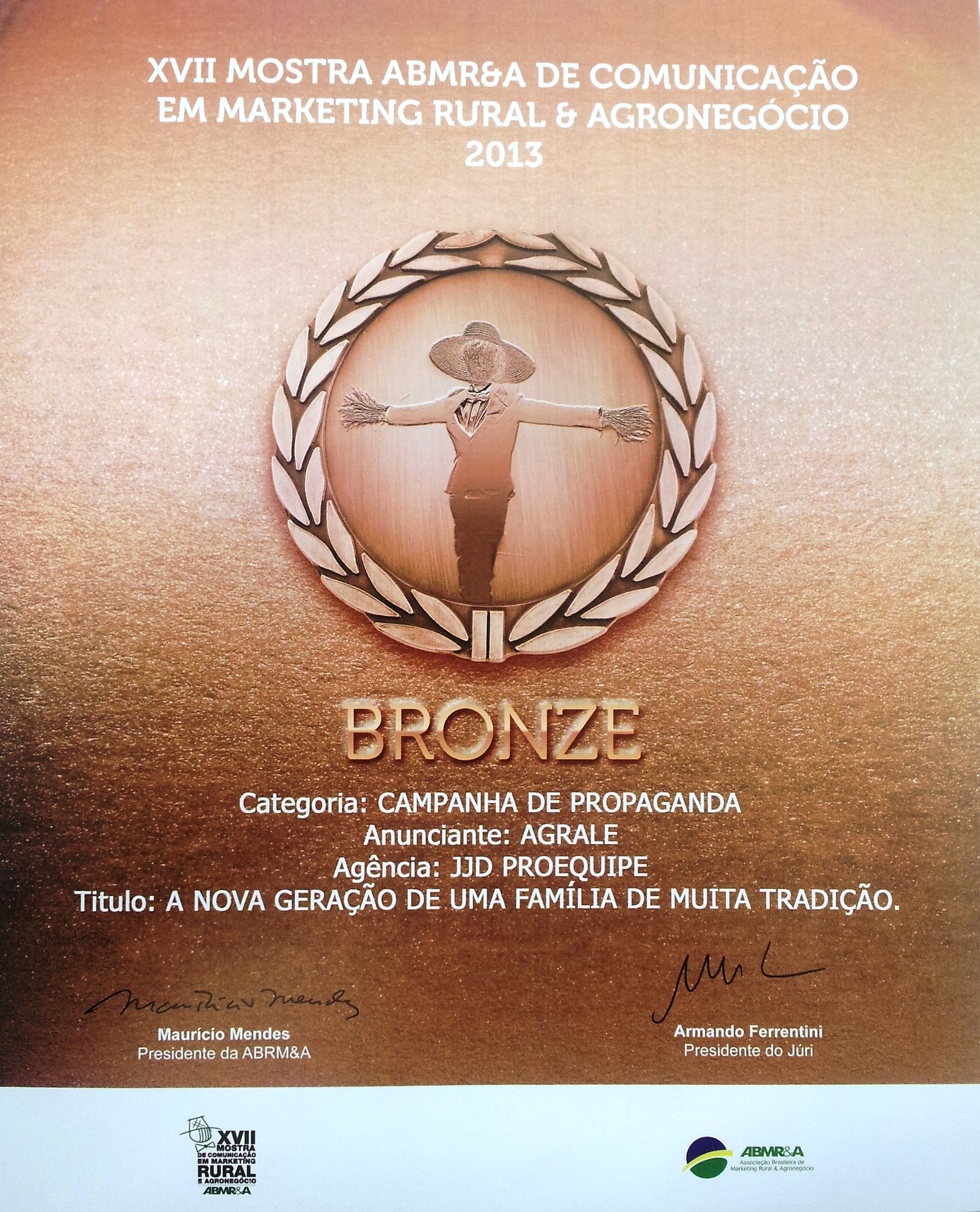 A Agrale conquistou Bronze na XVII Mostra ABMR&A de Comunicação em Marketing Rural e Agronegócios 2013 com a Campanha A nova geração de uma família de muita tradição.