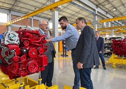 Junto de representantes da Agrale e da Foton, Adiló conferiu as instalações da empresa e os primeiros caminhões montados para a Foton Motor do Brasil.